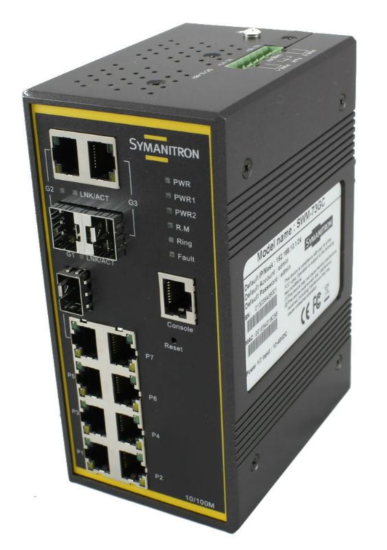 Промышленный сетевой коммутатор SYMANITRON отличается повышенной мощностью, высокой производительностью, что позволяет подключать к нему внушительный объём оборудования. Технические характеристики устройства обеспечивают максимальное быстродействие и дают возможность объединять данные любого уровня без перебоев в работе сети.