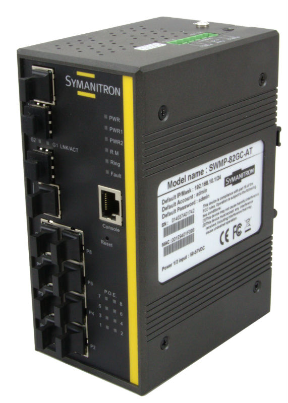 Компания SYMANITRON предлагает купить PoE коммутаторы с интерфейсом управления, позволяющем гибко настраивать выдаваемую на каждом порту мощность, а также задавать расписание, согласно которому будет включаться или выключаться питание. Устройства могут быть настроены при помощи Windows-утилиты Sy-View. Коммутатор PoE портов поддерживает технологию Ethernet-резервирования с временем восстановления Sy-Ring. PoE коммутатор Ethernet характеризуется наличием функции оперативного самовосстановления и удлинённым жизненным циклом.