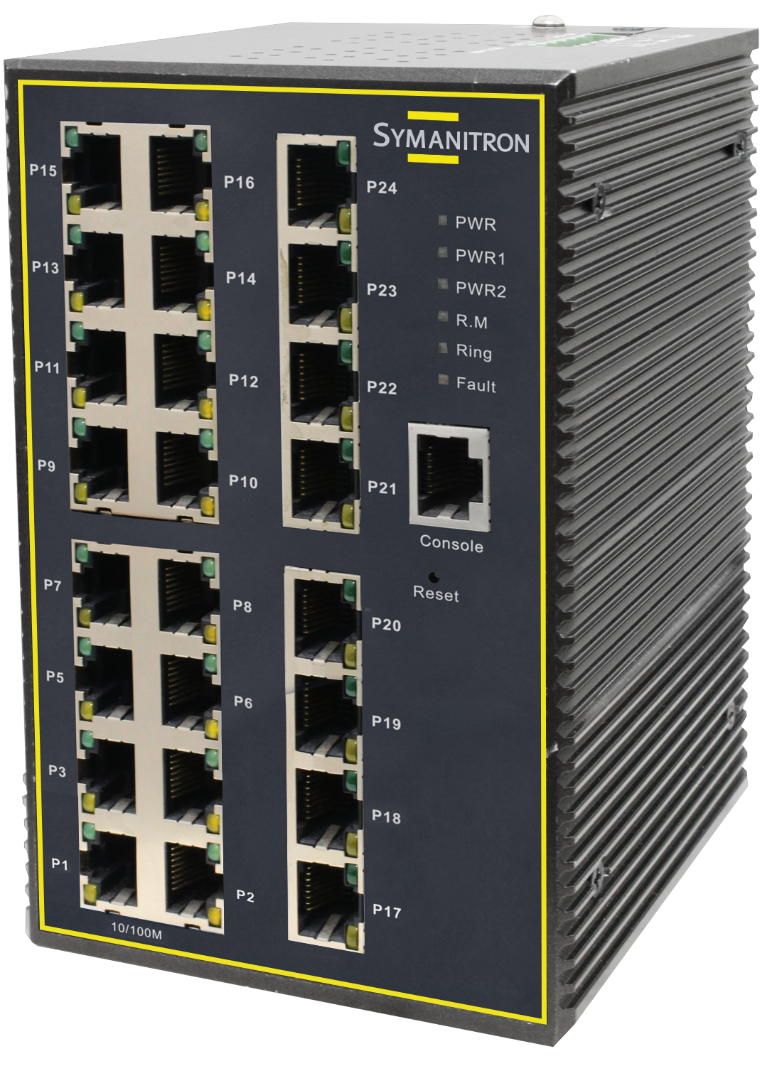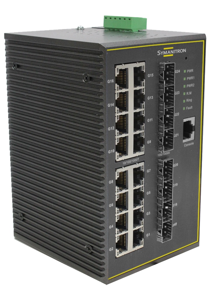 Компания SYMANITRON – российский производитель промышленного сетевого оборудования - предлагает широкий выбор промышленных управляемых коммутаторов, которые способны обеспечить бесперебойную работу крупной сети. Высококачественные устройства SYMANITRON – это надёжное решение задач по оснащению компании сетевым оборудованием. Управляемые коммутаторы сегодня – это мощные высокопроизводительные устройства, которые способны безотказно функционировать в различных внешних условиях. Они устойчивы к пыли, грязи, морозу и жаре. Выдерживают скачки напряжения и прекрасно поддерживают работоспособность при поломке нескольких модулей системы.